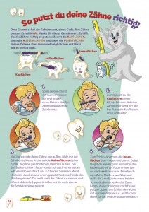 MAGAZIN nach dem Zahnarztbesuch verschenkt werden. So wird erreicht, dass sich die Eltern auch Zuhause zusammen mit ihren Kindern mit Zahnhygiene beschäftigen. Kindgerechte Zahn-Rätsel, Malseiten, gesunde Rezepte und eine Milchzahnbox zum Basteln bereiten jede Menge Spaß. Und somit wird auch den Eltern nahe gebracht, wie wichtig es ist, Kinderzähne zu pflegen.